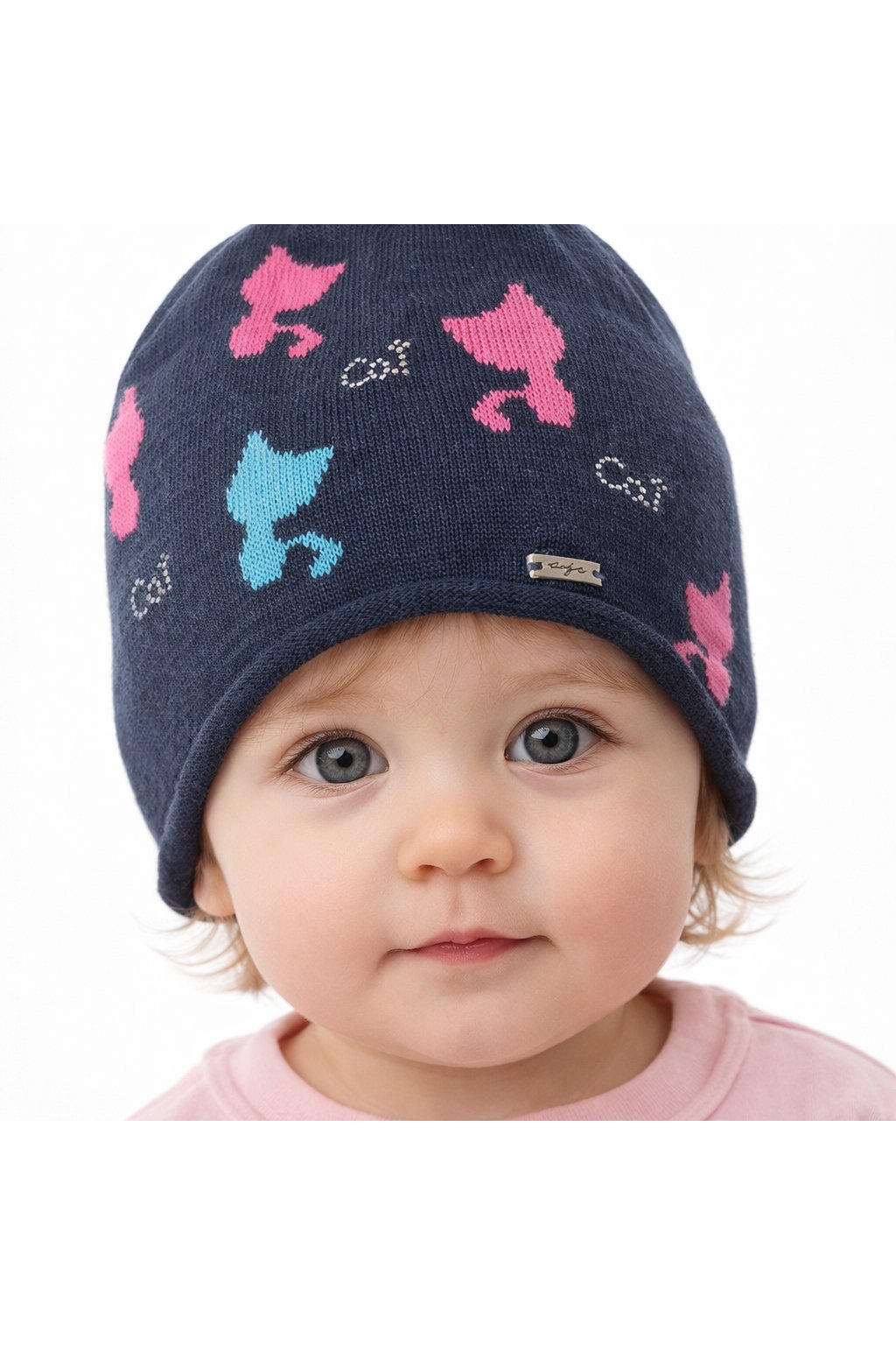 AJS čiapka prechodná tmavomodrá s mačičkami