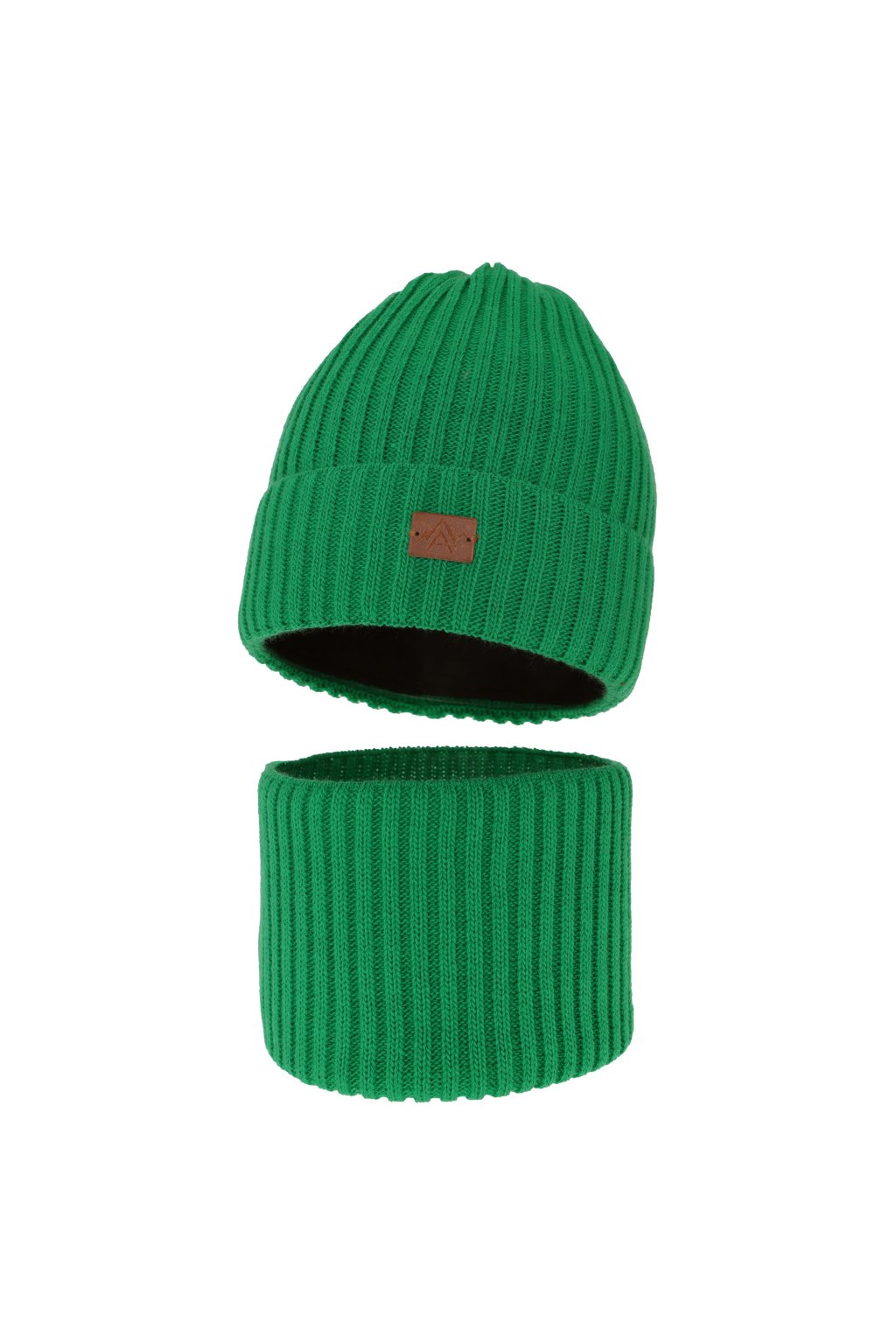 Chlapčenský komplet čiapka a šál Fargo zelený