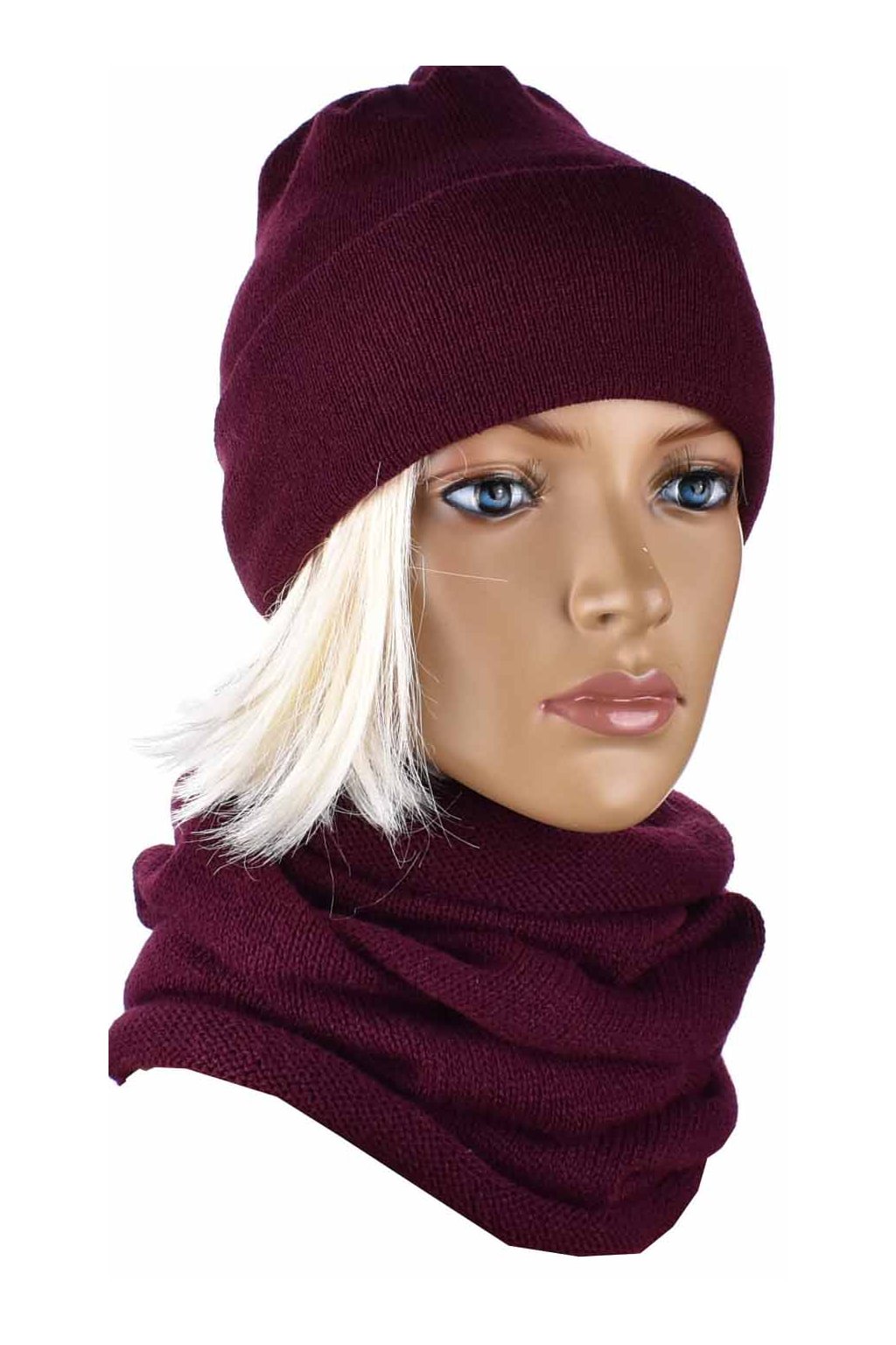 Dámsky komplet čiapka bez brmbolca a tunelový šál bordový 053