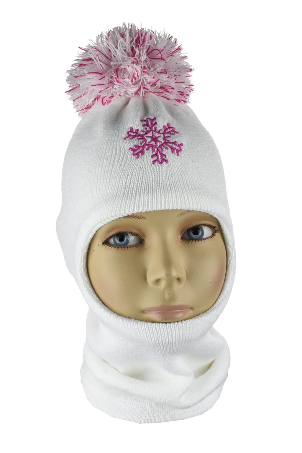 Detská kukla s brmbolcom a vyšívanou vločkou biela