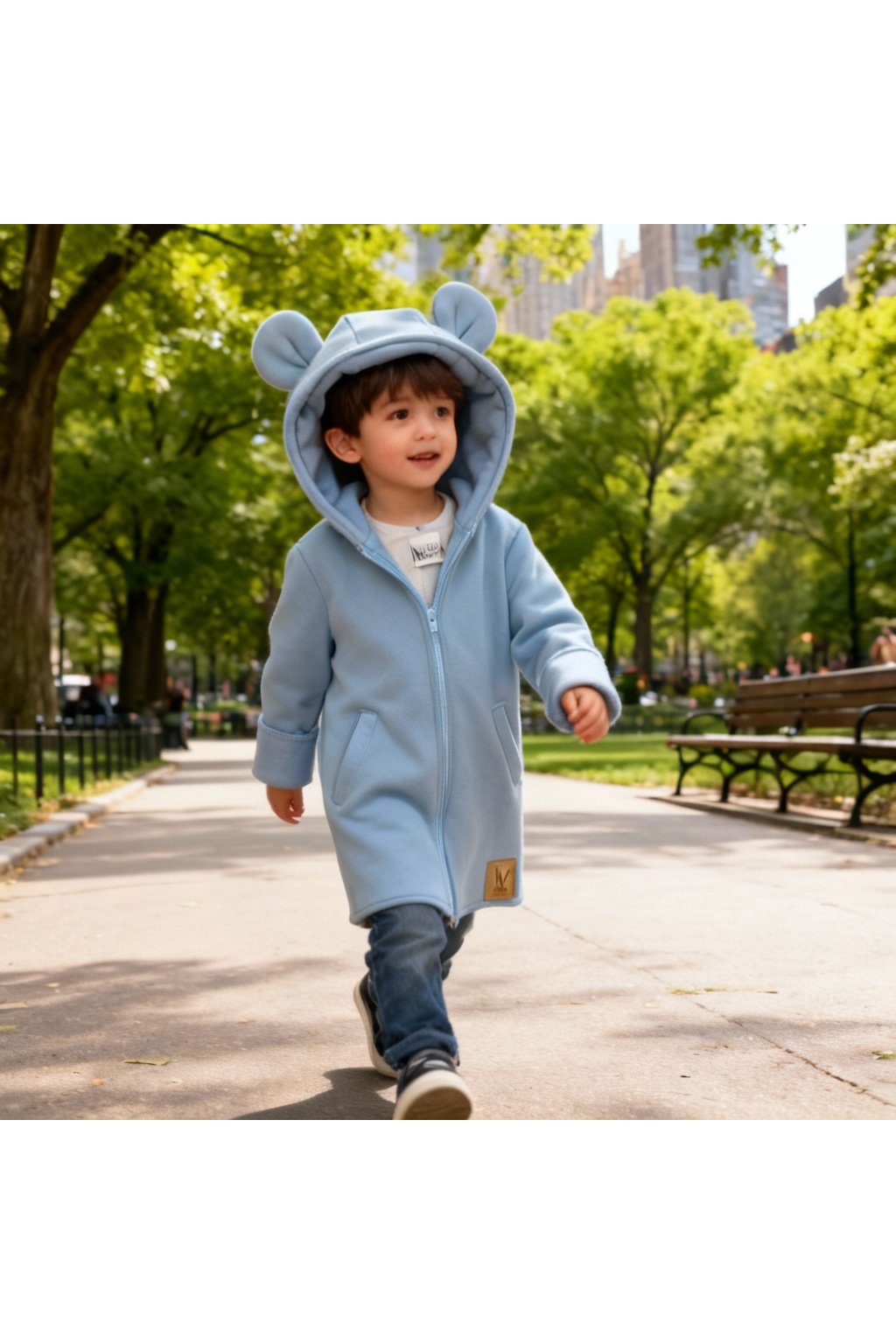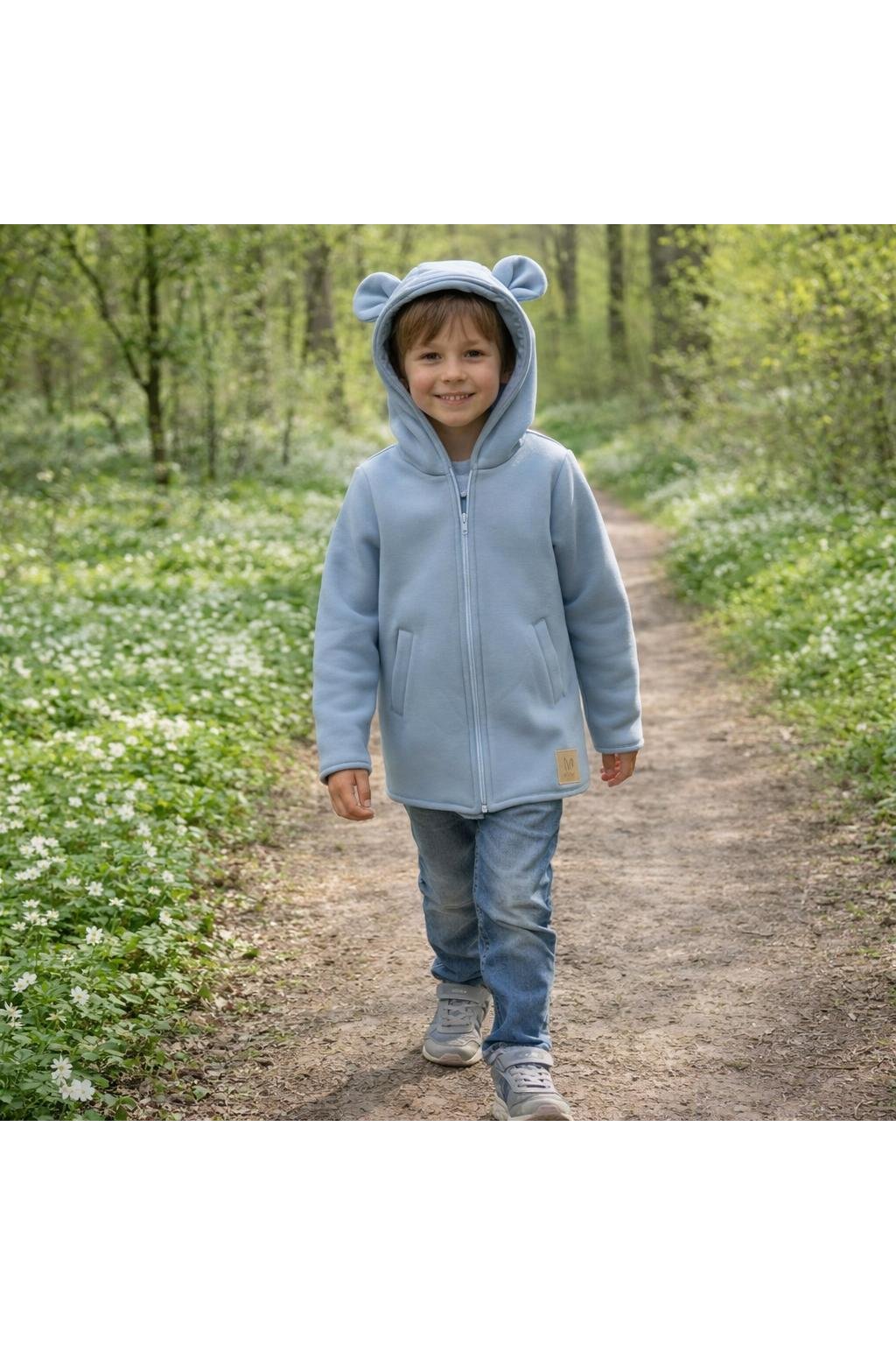 Macková mikina s ušami v svetlo modrej farbe pre chlapcov aj dievčatá.