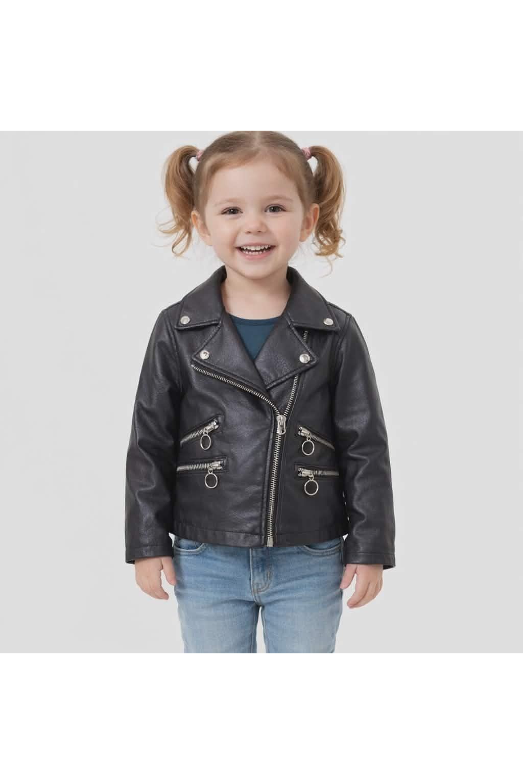 Doprajte svojej dcérke pocit výnimočnosti a štýlu! ✨ Čierna koženková bunda je investíciou do šatníka, ktorá sa nikdy neomrzí.