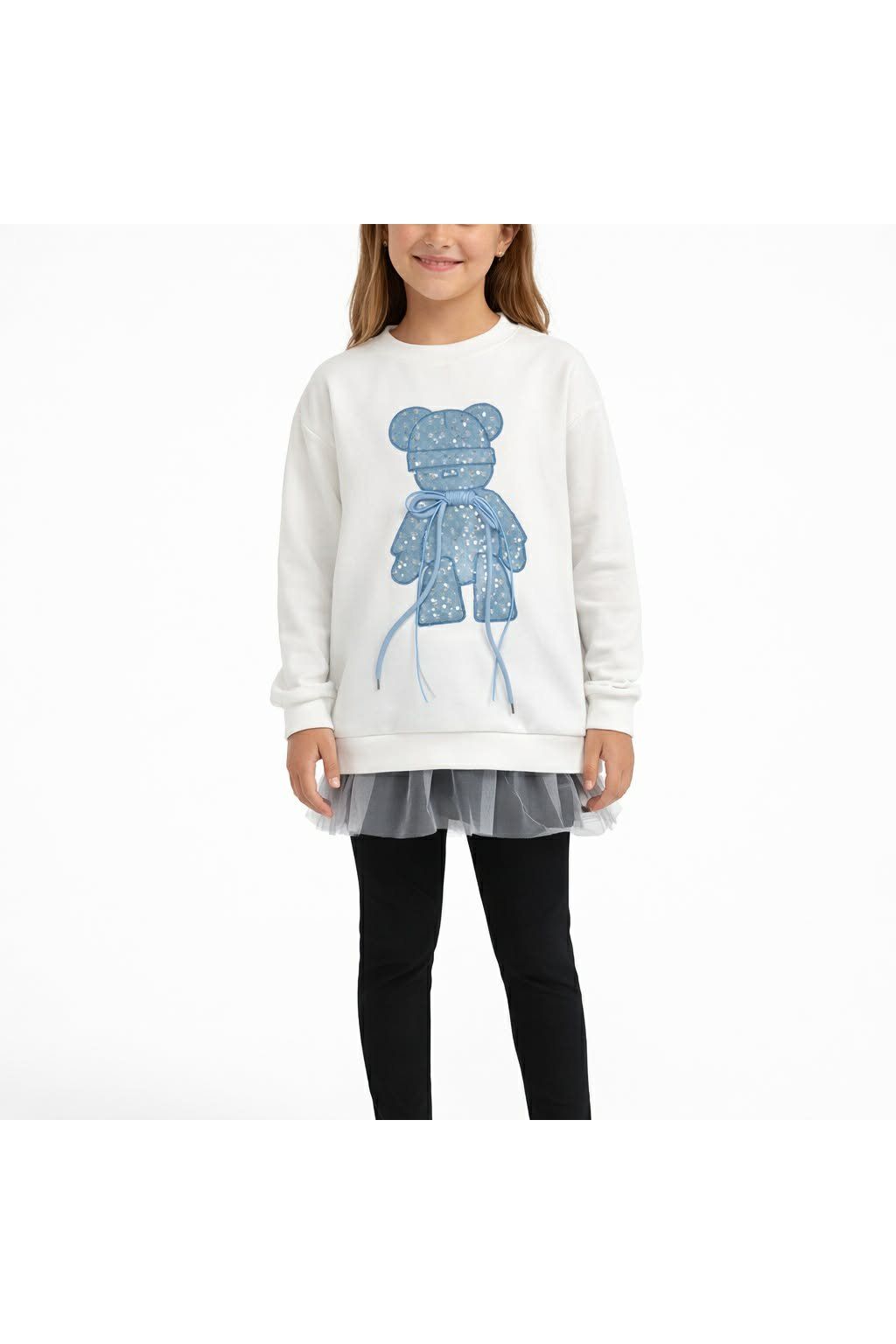 Dievčenská mikina s nášivkou modrého medvedíka.