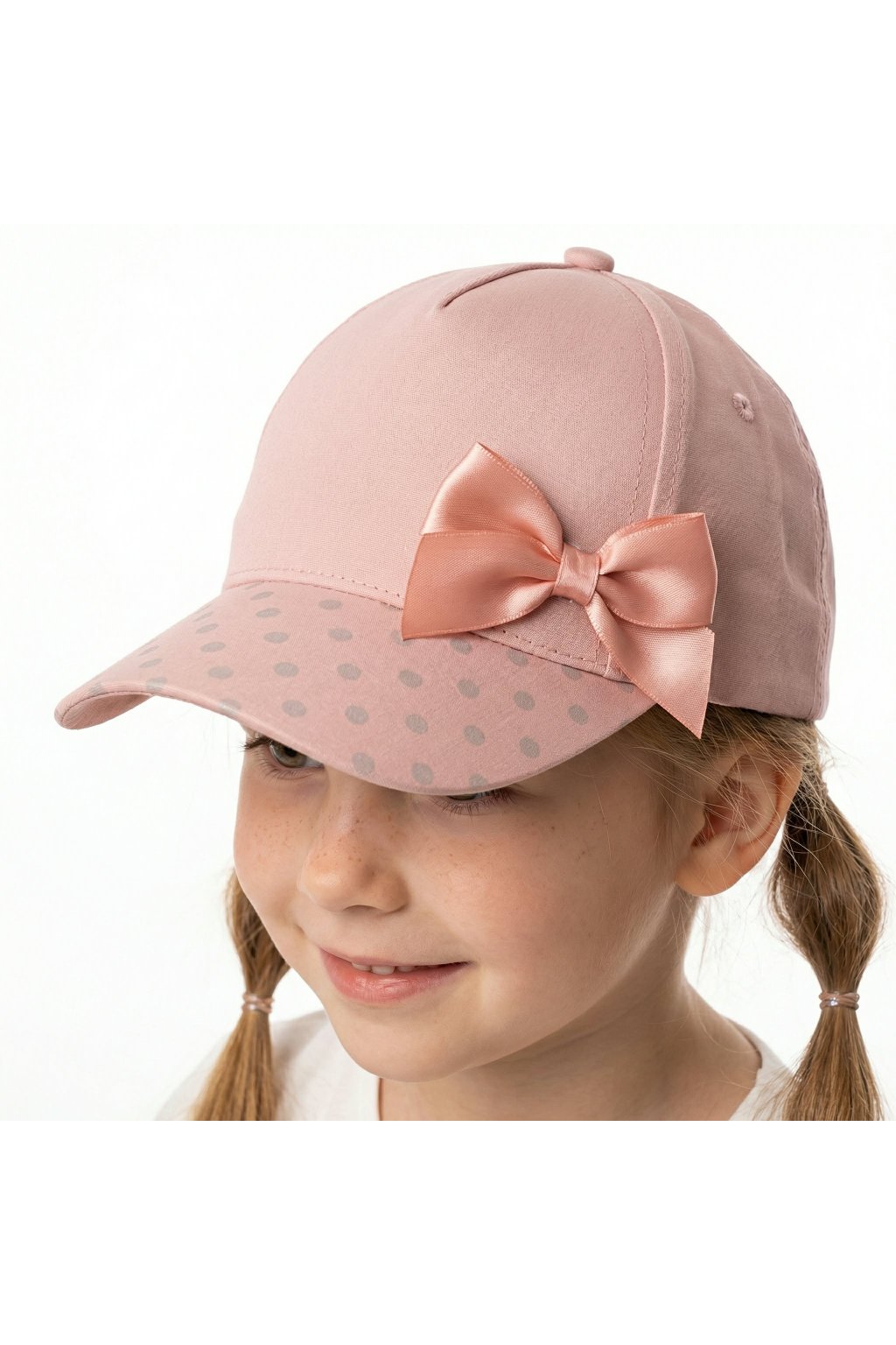 Púdrovo ružová dievčenská šiltovka s bodkami a mašličkou .