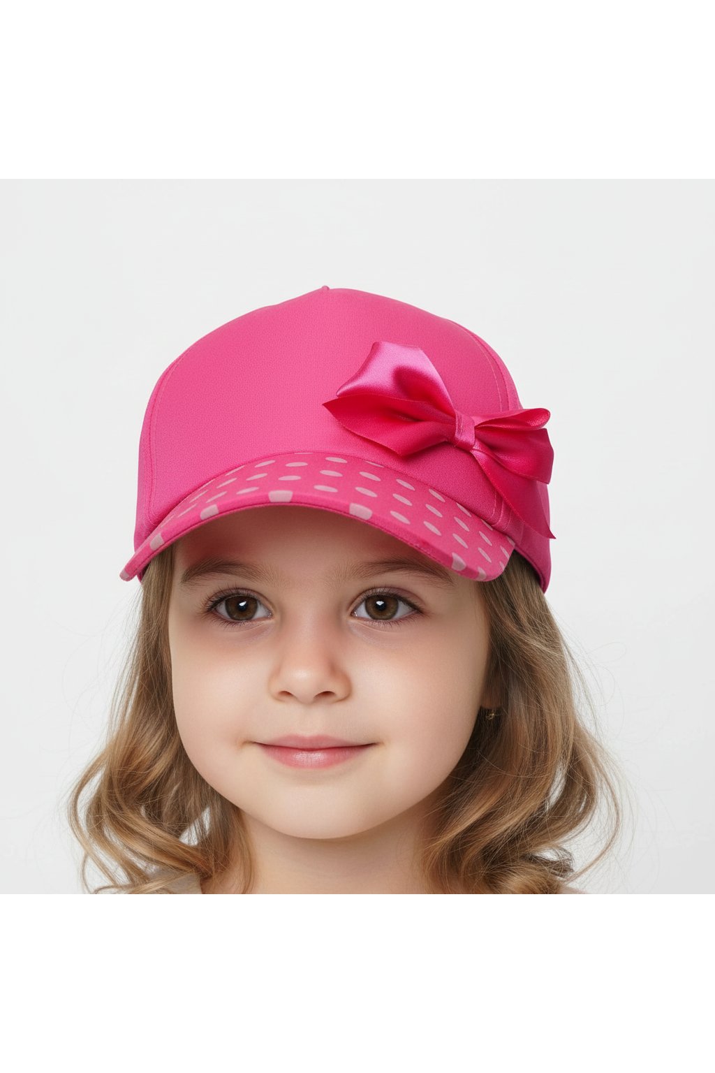 Tmavo ružová dievčenská šiltovka s bodkami a mašličkou .