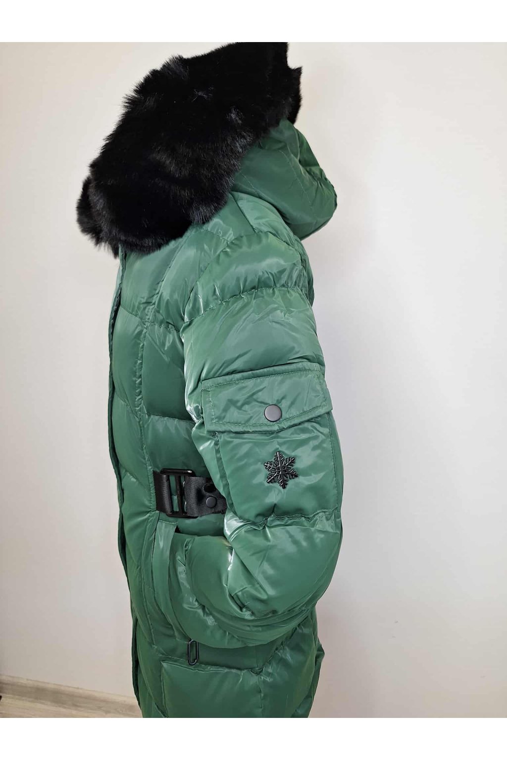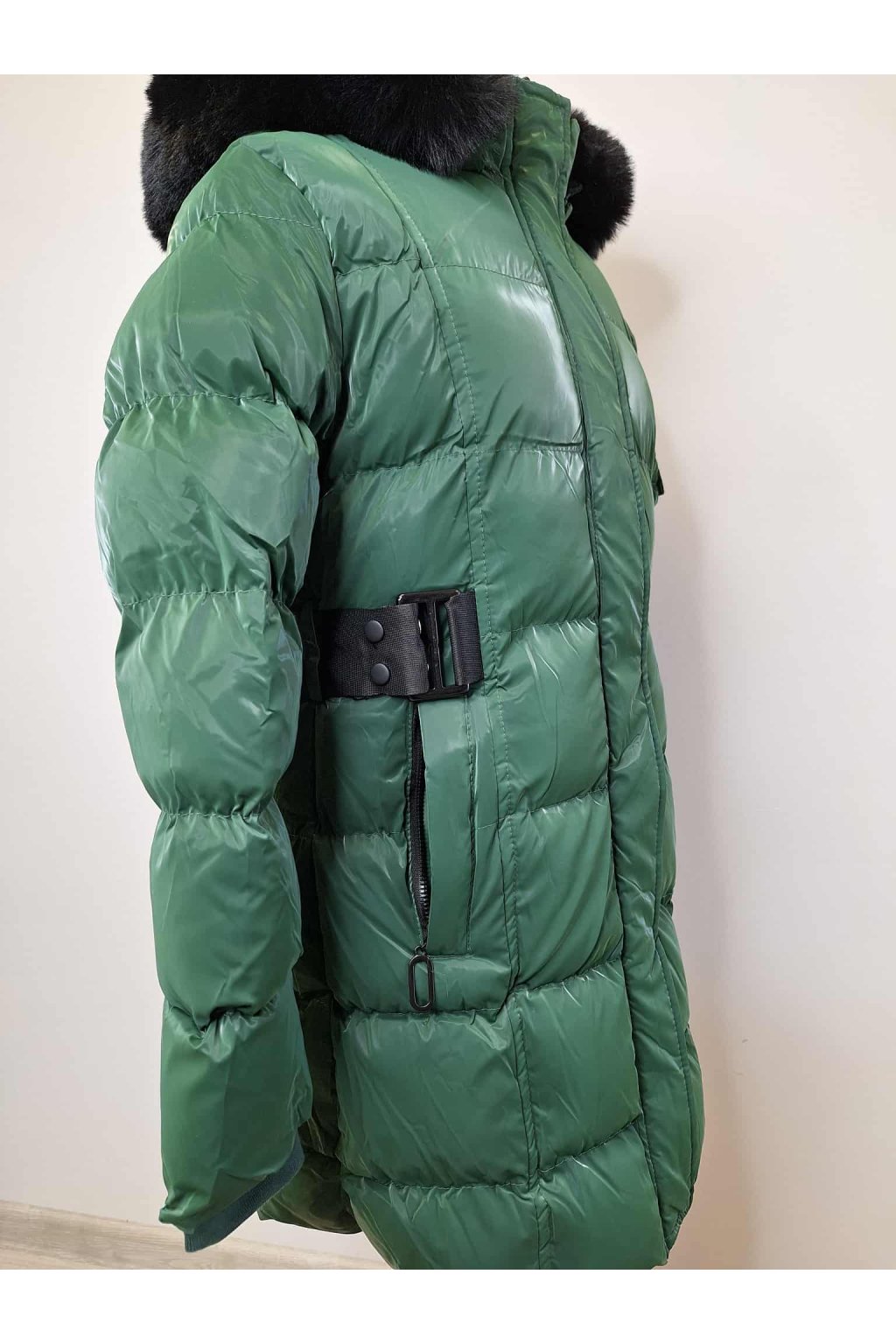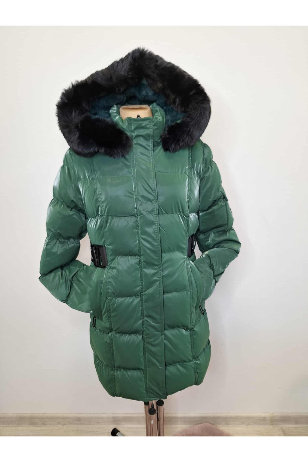 Nádherná zimná bunda pre dievčatá v netradičnej krásnej tmavo zelenej farbe .