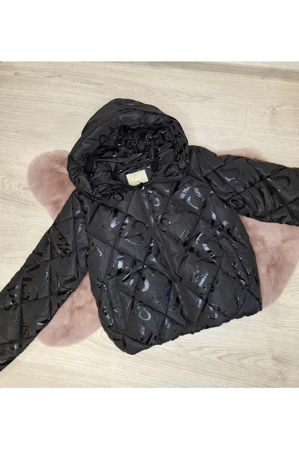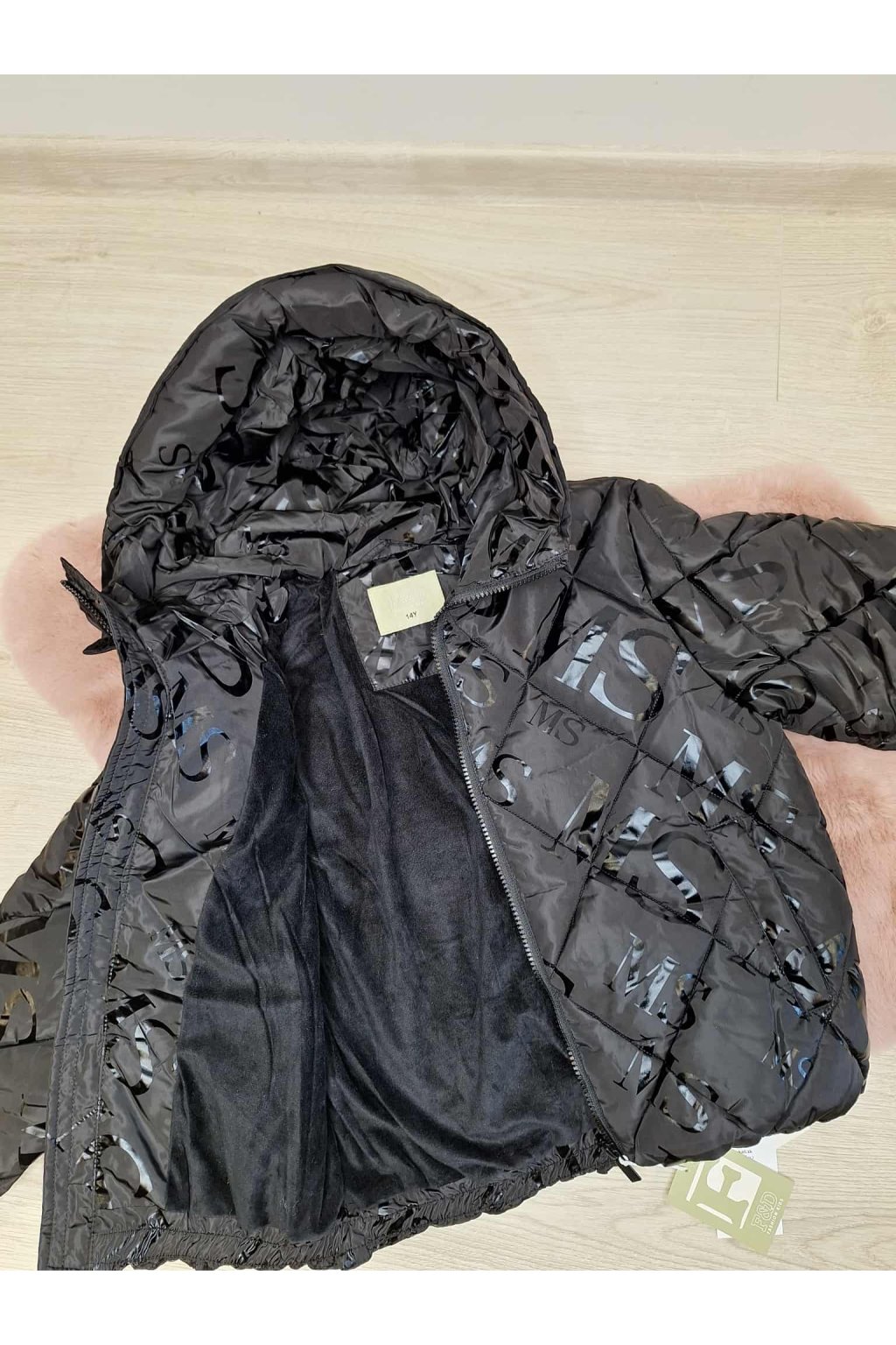 Zateplená zimná bunda pre dievčatá s kapucňou a bočnými prednými vreckami.