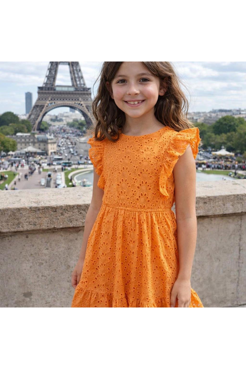 Dievčenské , pohodlné madeirové šaty v nádhernej oranžovej farbe .