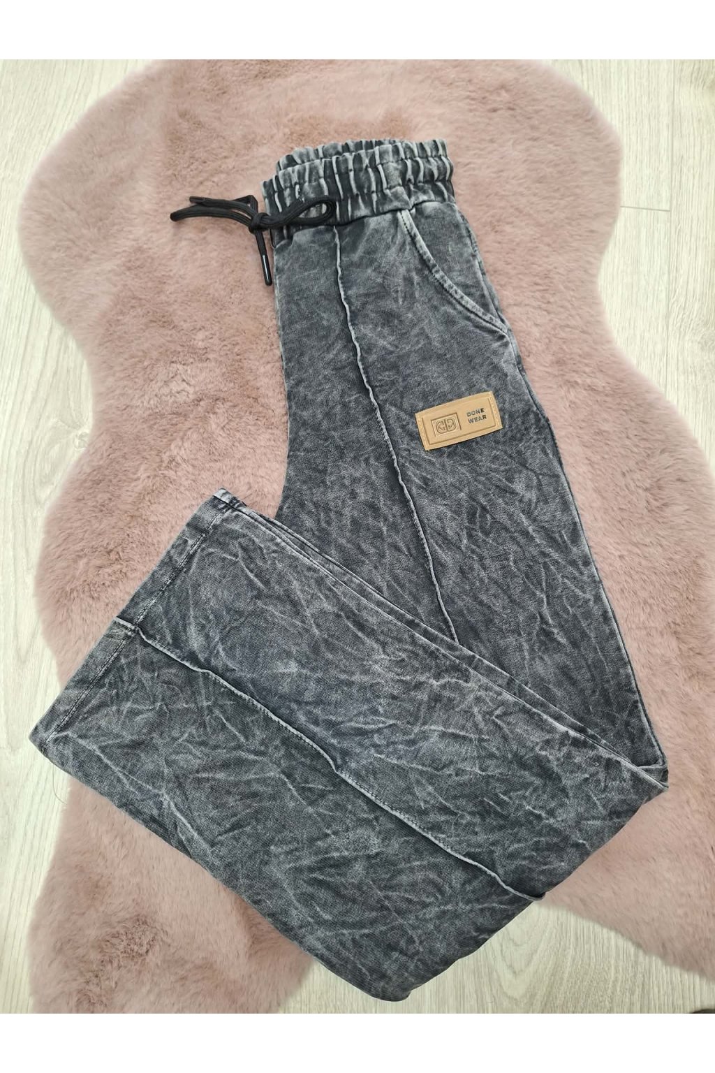 Nohavice majú v páse gumu aj šnúrky a dve bočné vrecká .