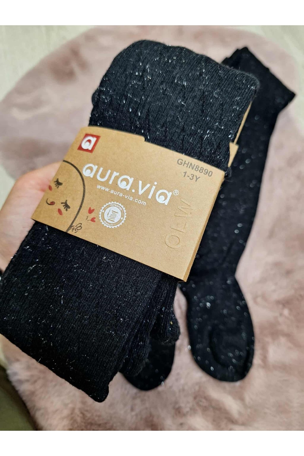 Bavlnené dievčenské pančuchy prešívané lesklou niťou.
