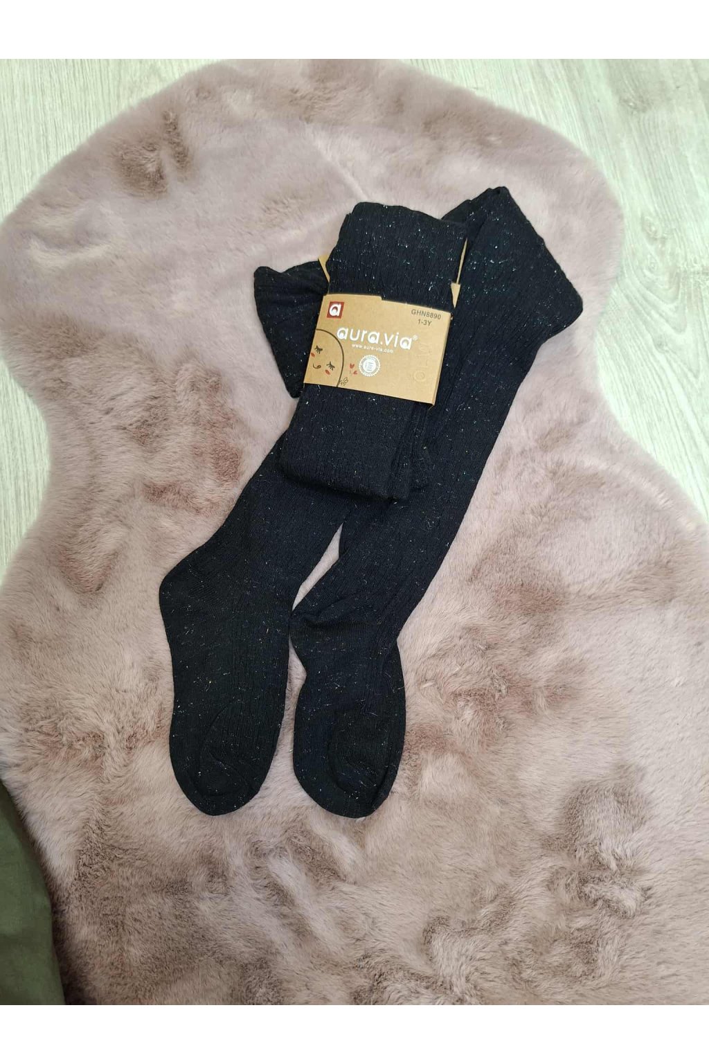 Čierne dievčenské pančušky prešívané lesklou niťou.