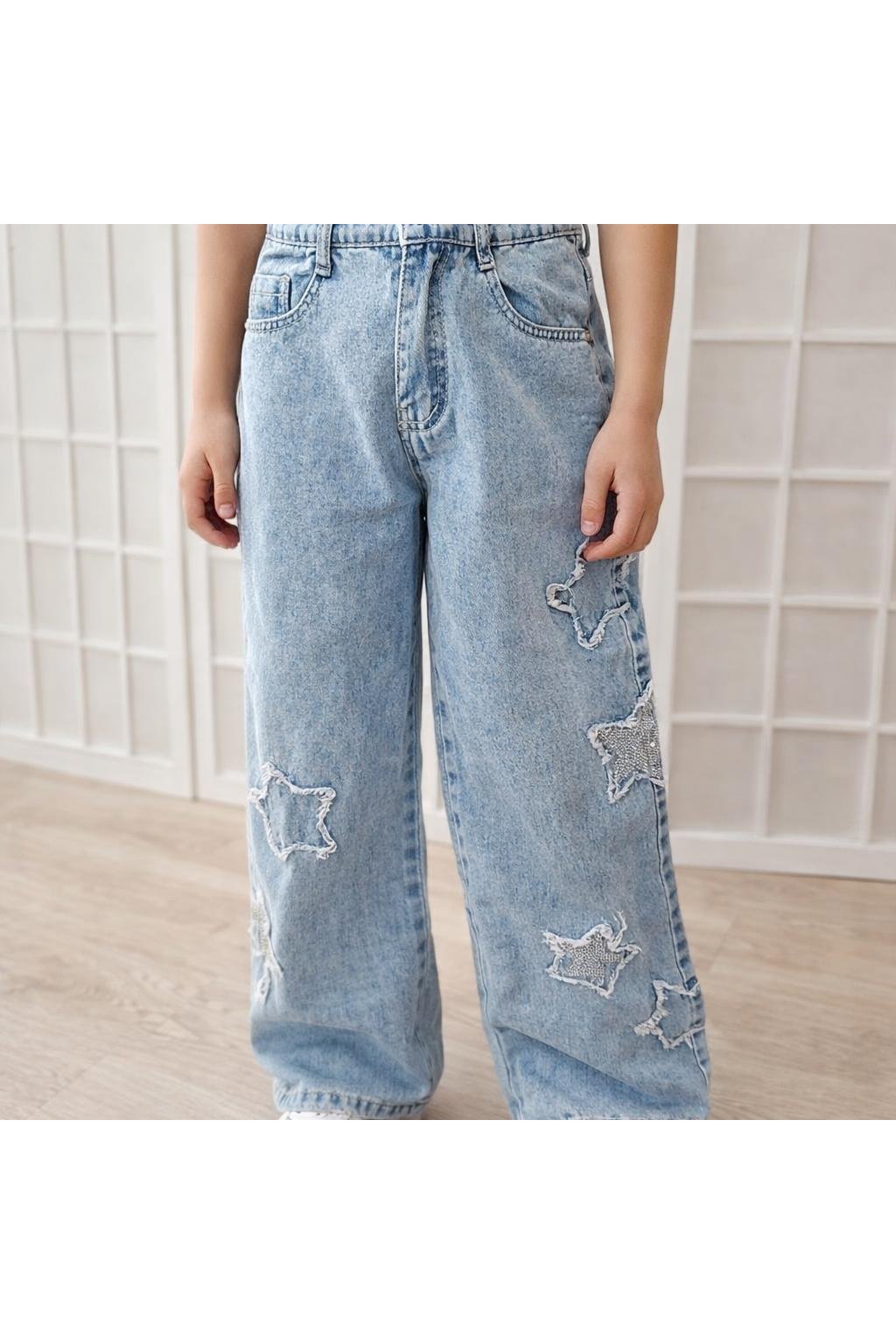 Moderné dievčenské rifle s hviezdičkami - strih wild leg (široké nohavice).