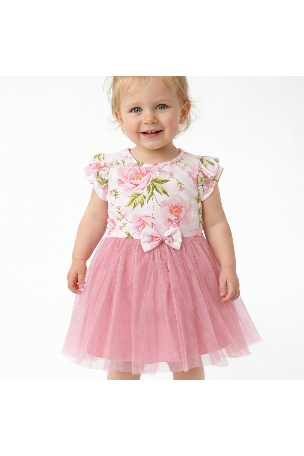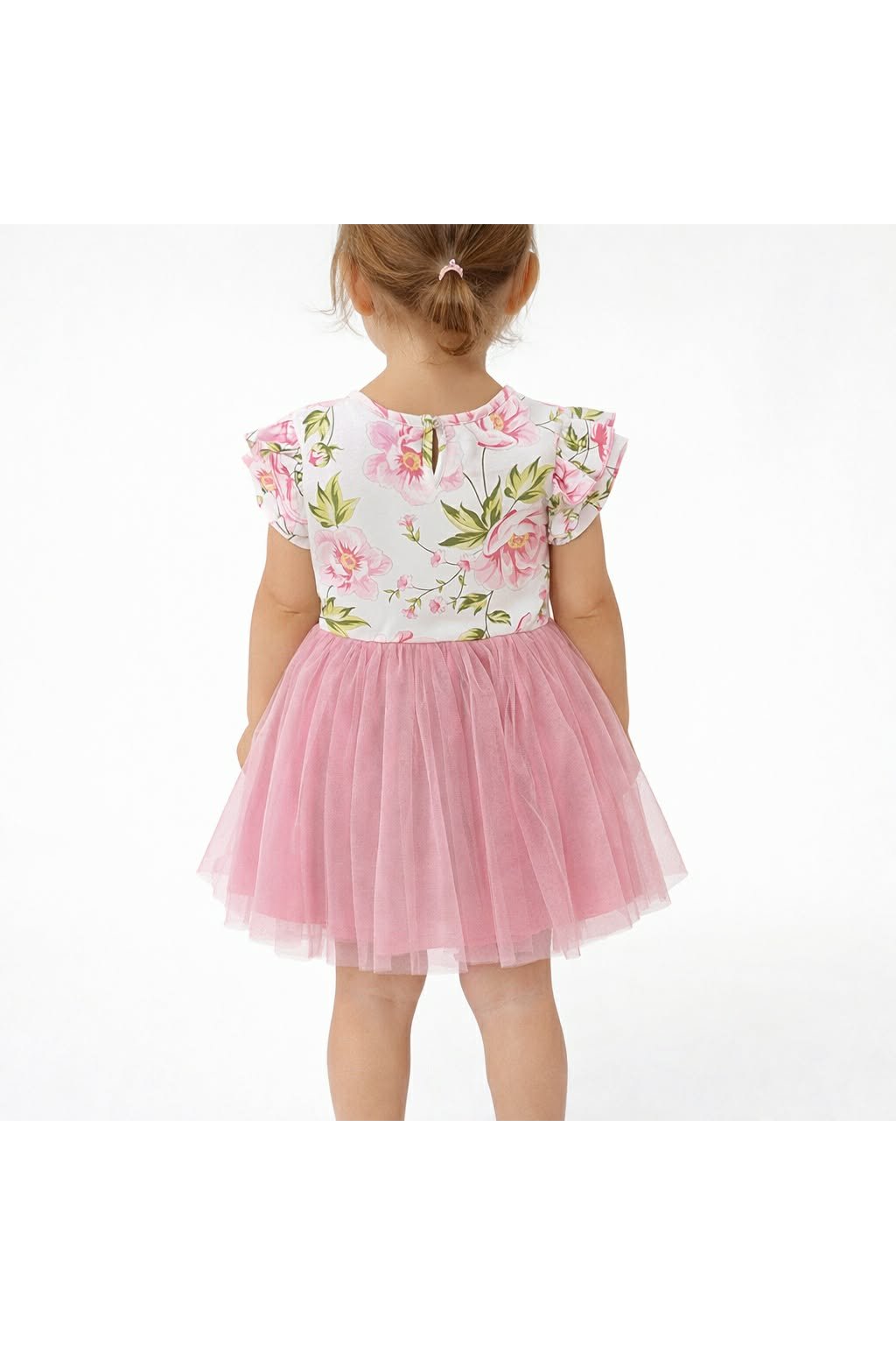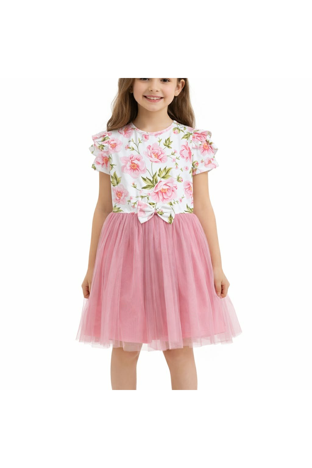 Pohodlné a krásne šaty s kvetovaným vrchom a tylovou sukničkou .