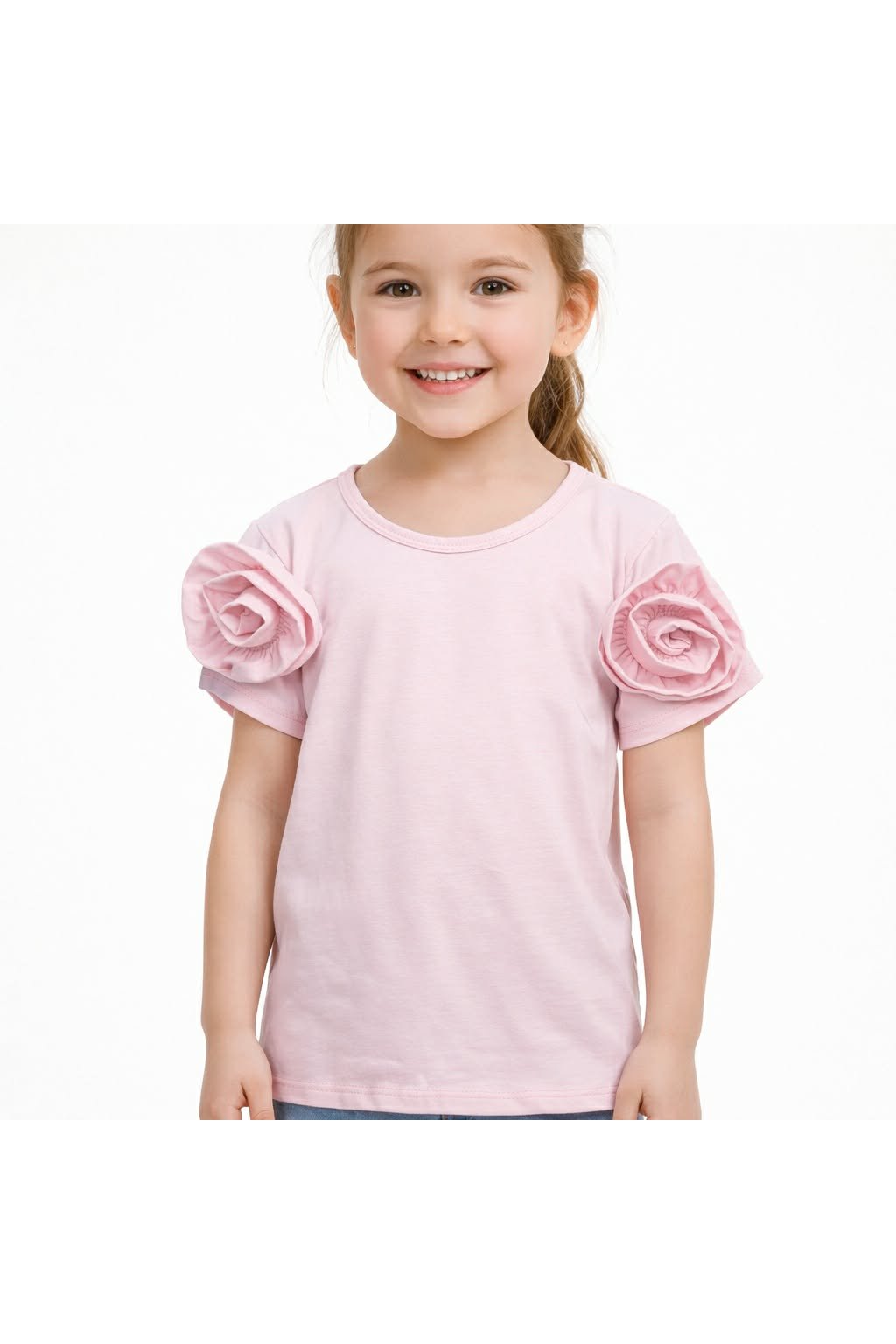Bavlnené dievčenské tričko so zaujímavými ružičkami na rukávoch ,