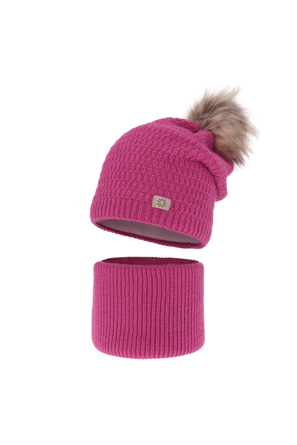 Dievčenský komplet čiapka a šál Germina tmavo ružový