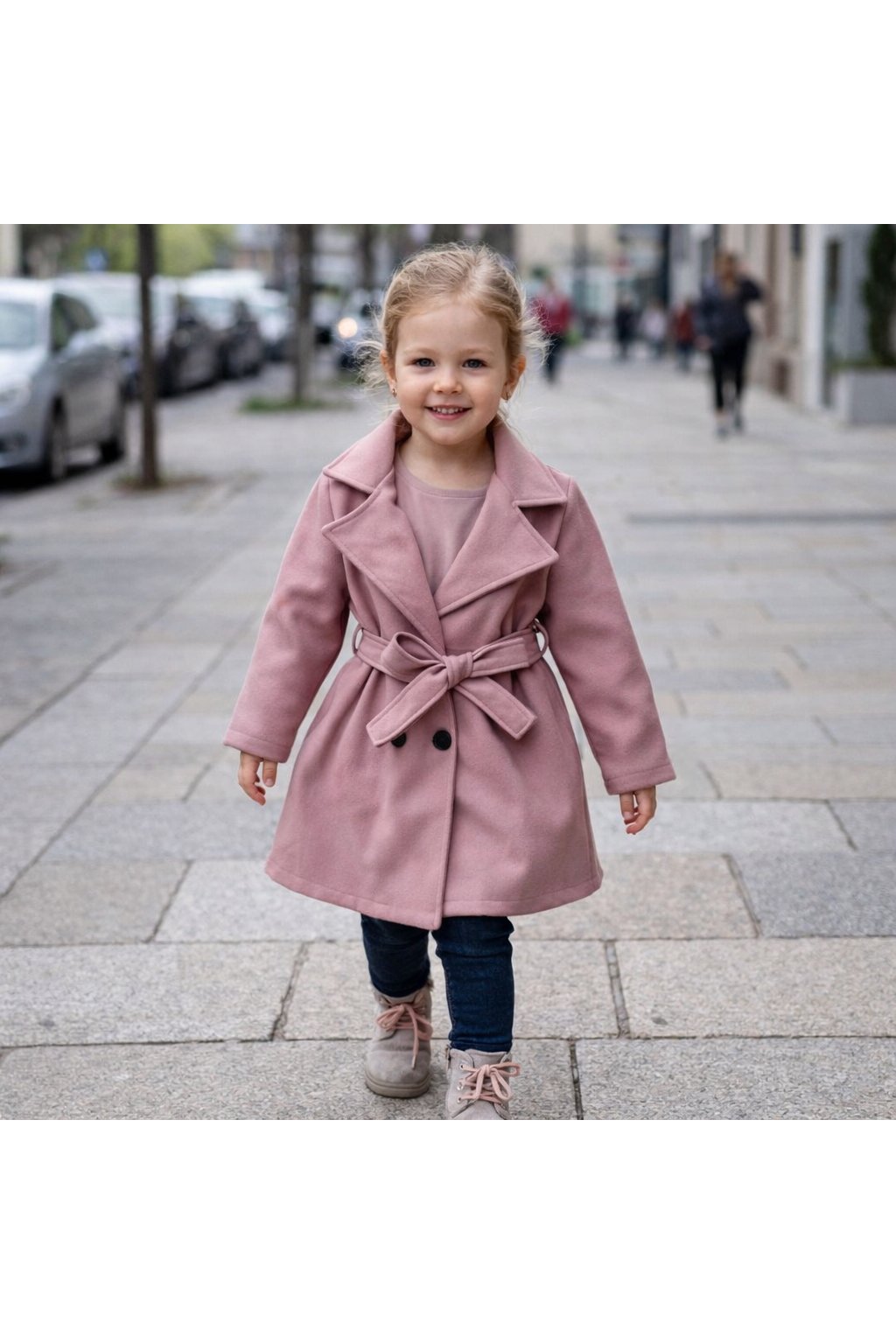 Dievčenský prechodný kabát púdrovo ružový