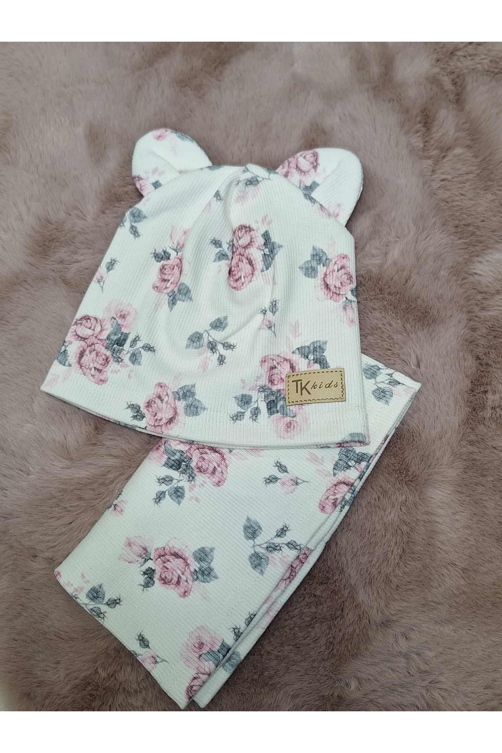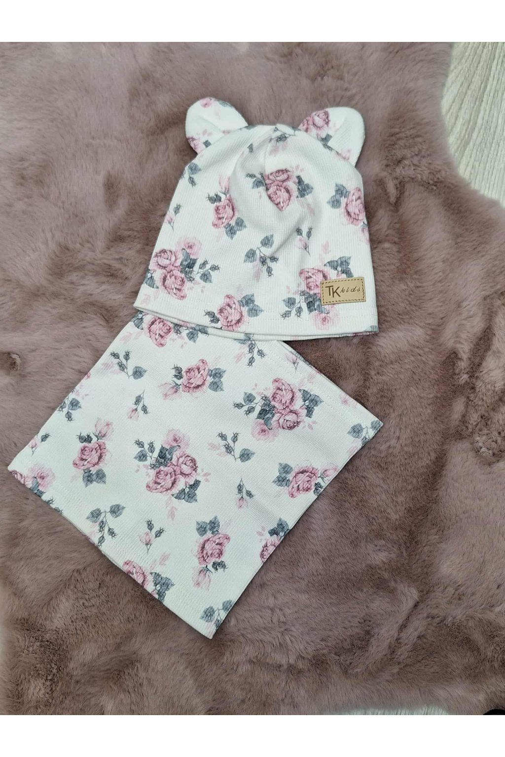 Bavlnený jedno vrstvový komplet čiapka s uškami a tunelový nákrčník .
