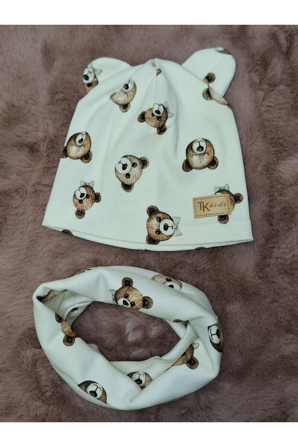 Nezateplený komplet čiapka a nákrčník s mackom.