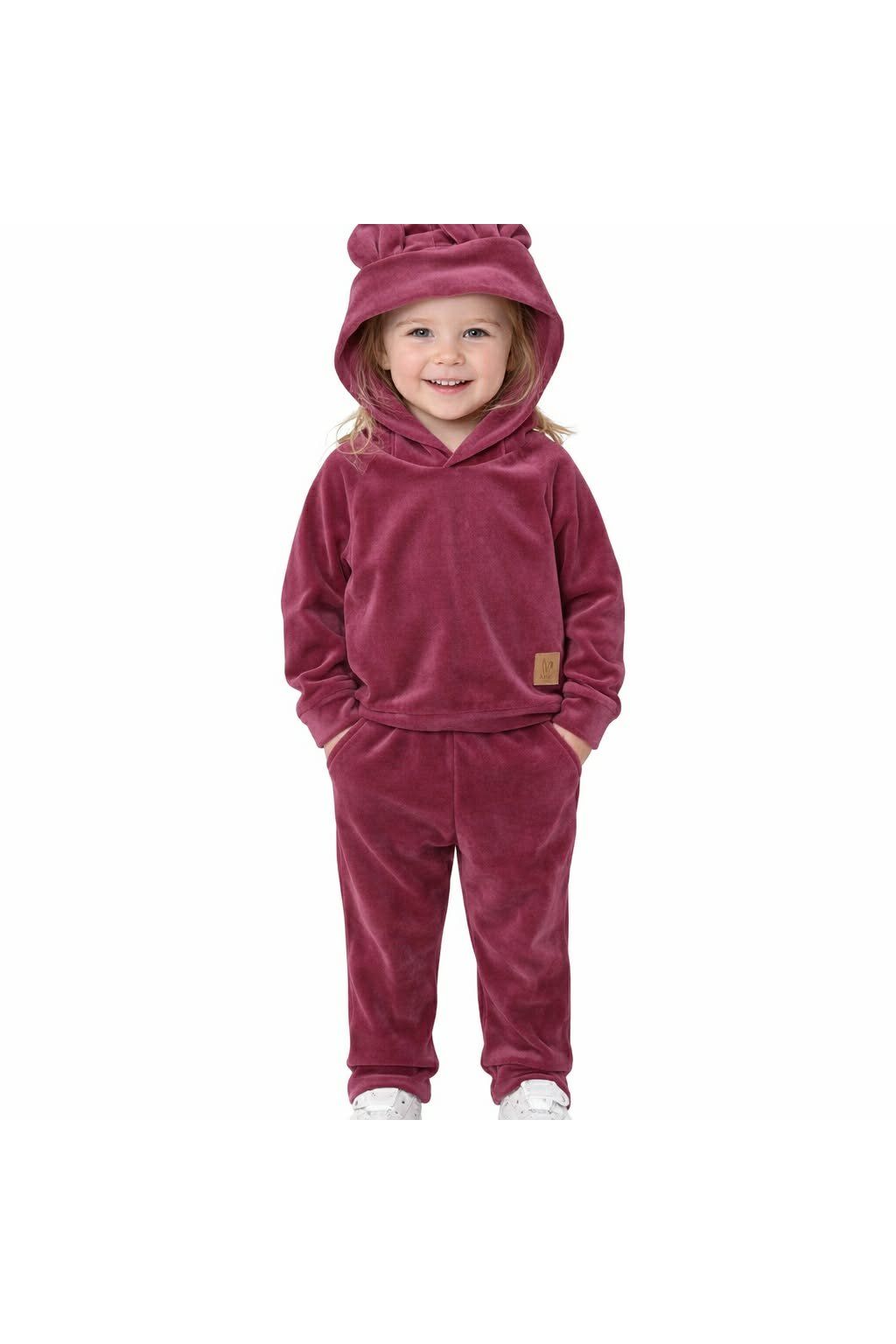 Tepláková detská súprava s uškami vyrobená z kvalitného velúru .